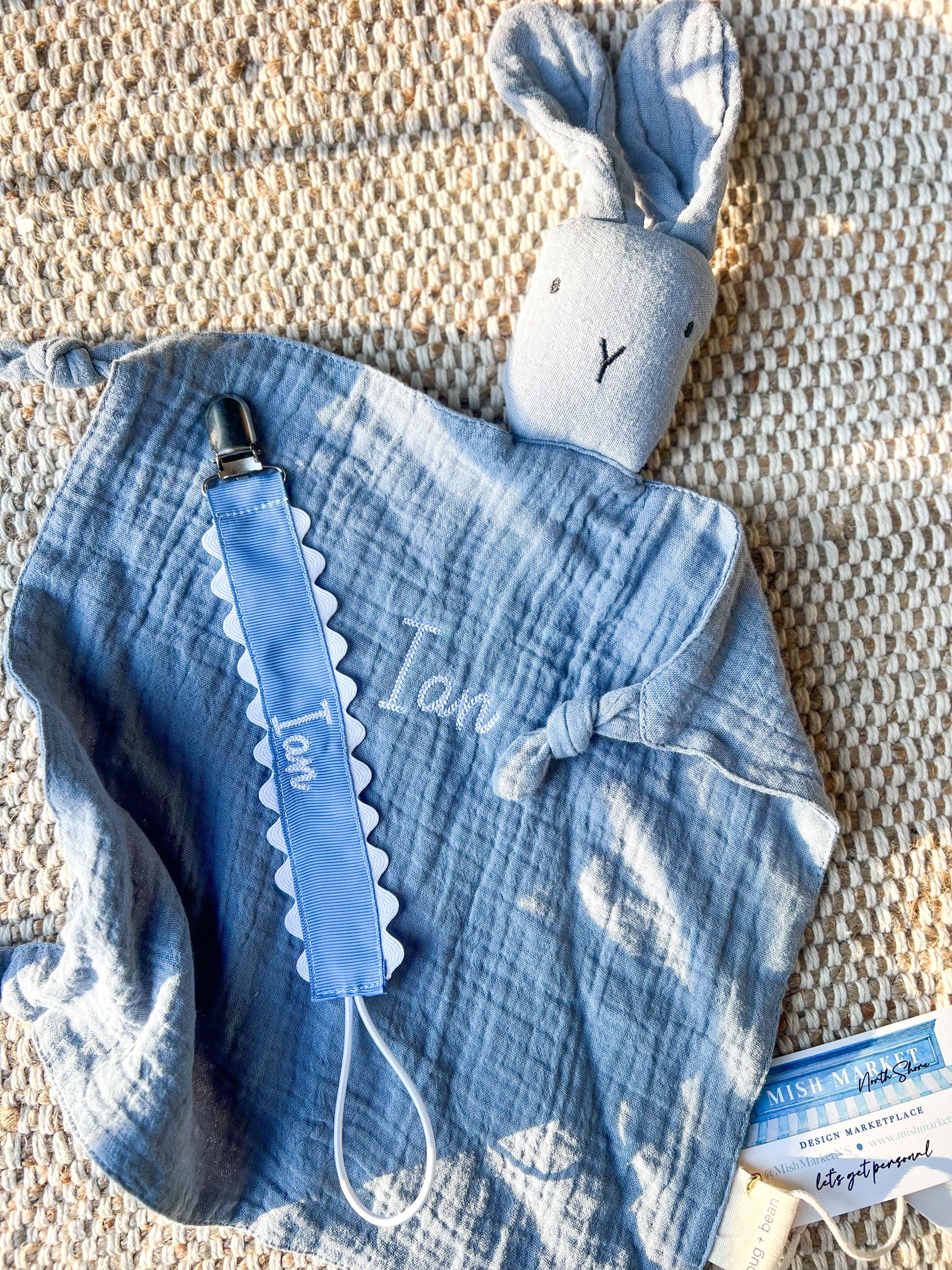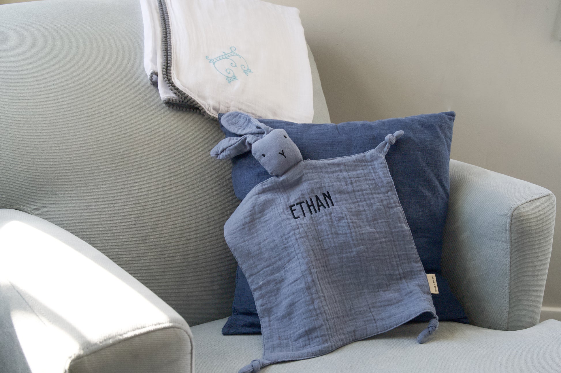 Makes for the sweetest baby gift! Made from 100% cotton, this bunny lovey blanket is the perfect tagalong piece to bring comfort and security for babies and toddlers. Add to your babies Easter Basket!