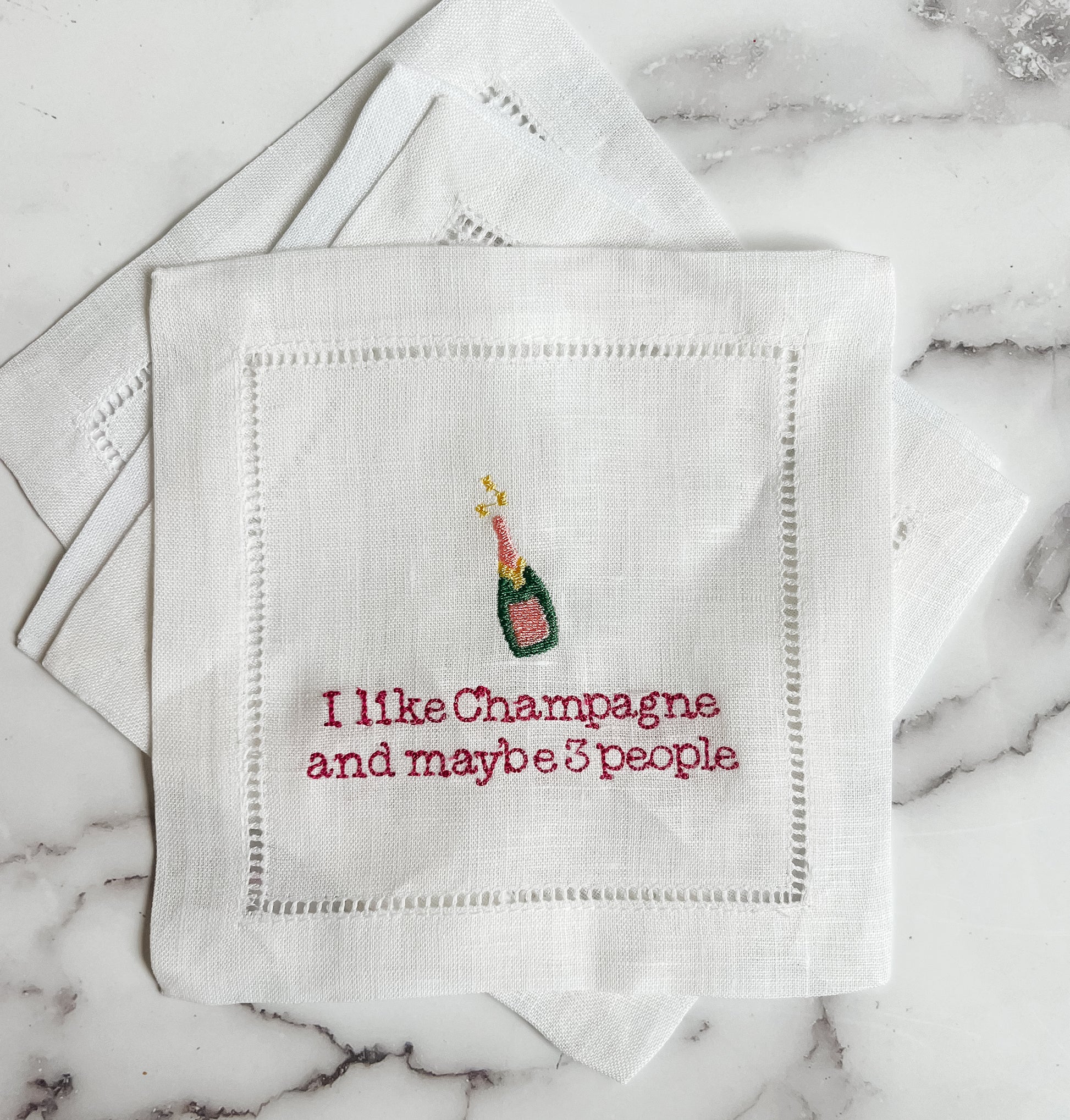 What could be better than a little bubbly?! We think nothing! Sold as set of 4. Linen cocktail napkins.