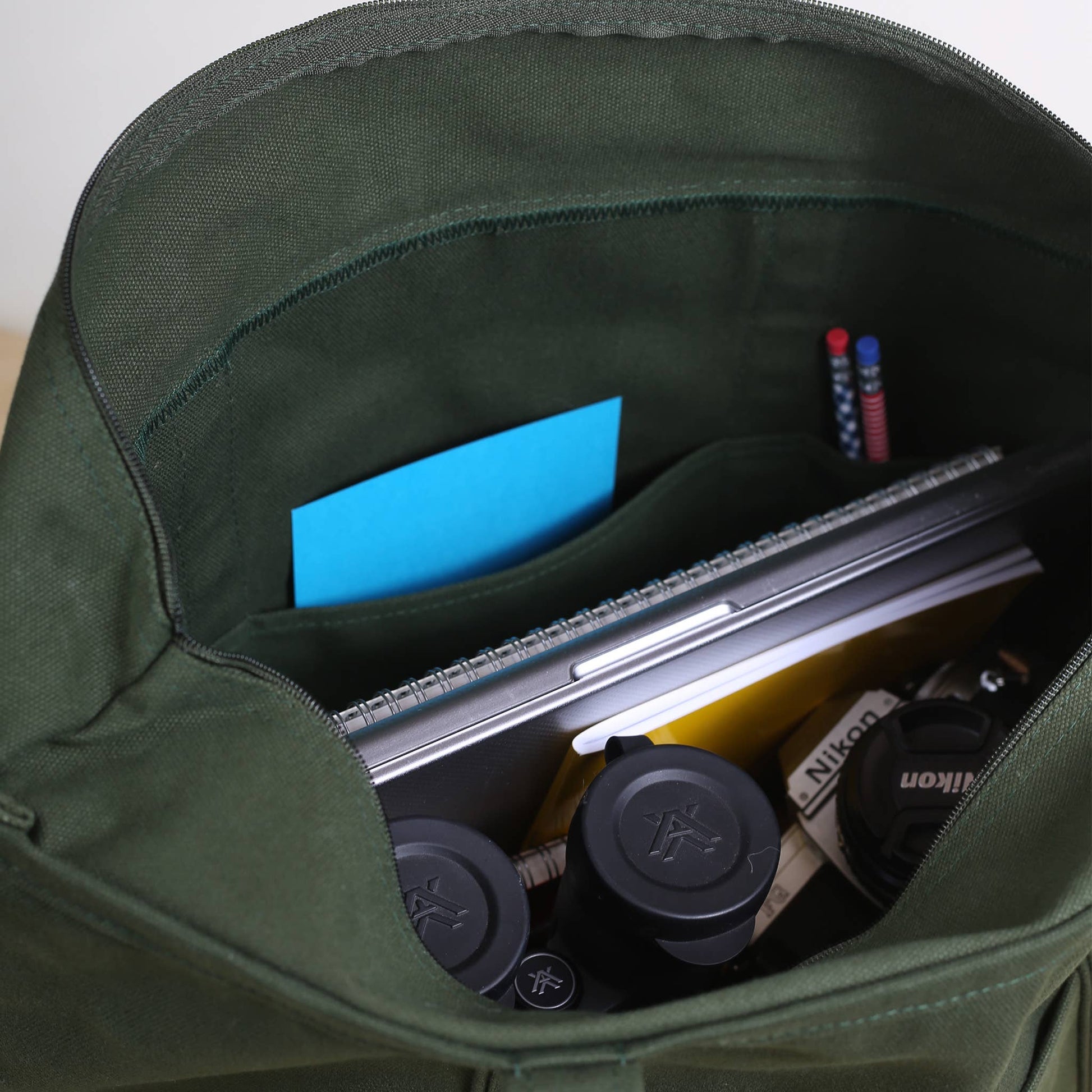 Fully lined with pockets to organize your things. Heavyweight natural cotton canvas. Double reinforced straps and bottom 360-degree interior pockets to keep items organized Outside slip pocket for easy access to your keys or phone.