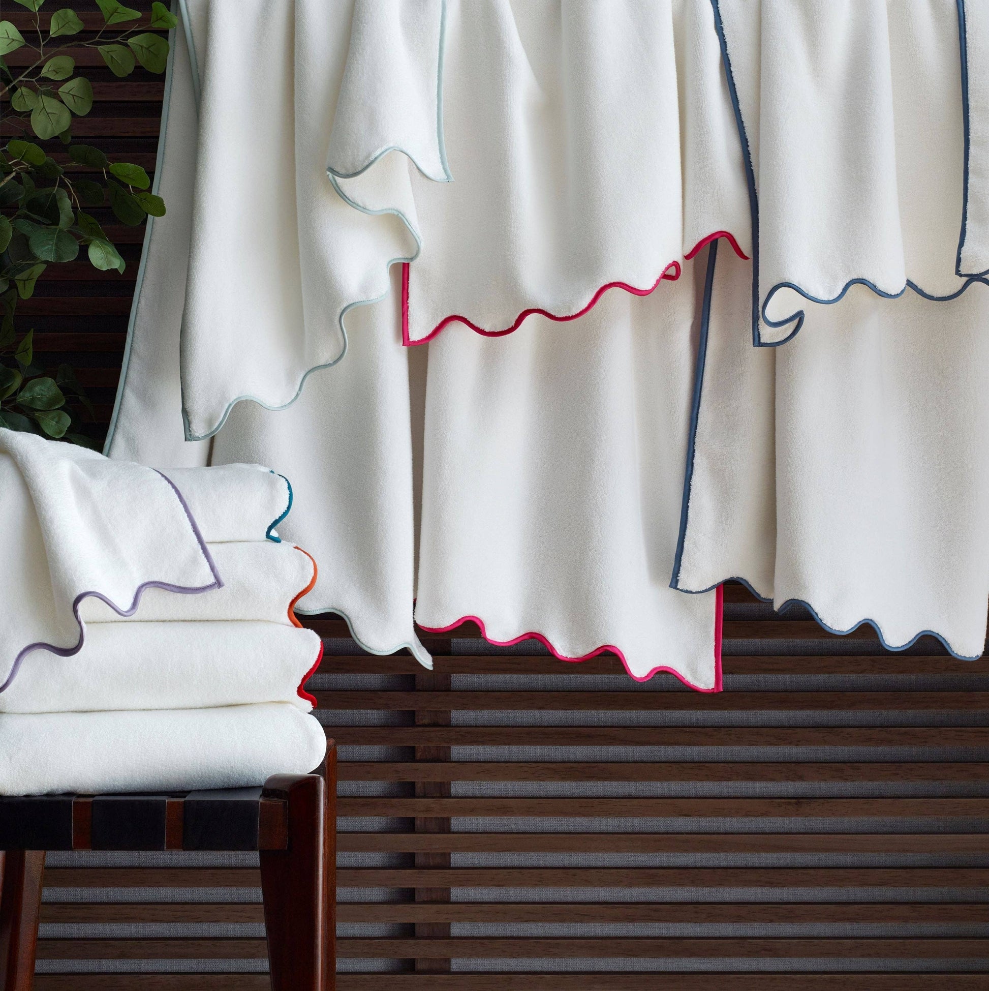 Our Antalya finger tip towels are finished with a scalloped piping for a playful touch. They are the towel of luxury. The perfect gift for your girlfriend who has everything or a show stopper in your bathroom!