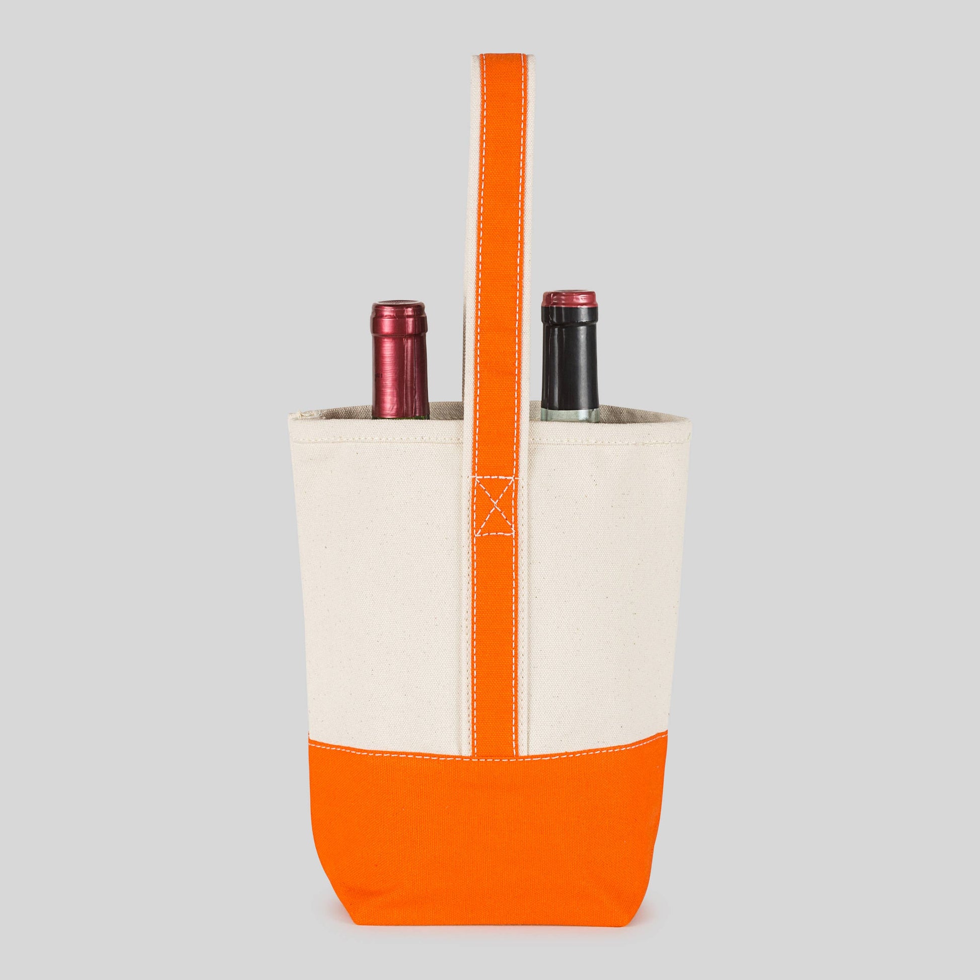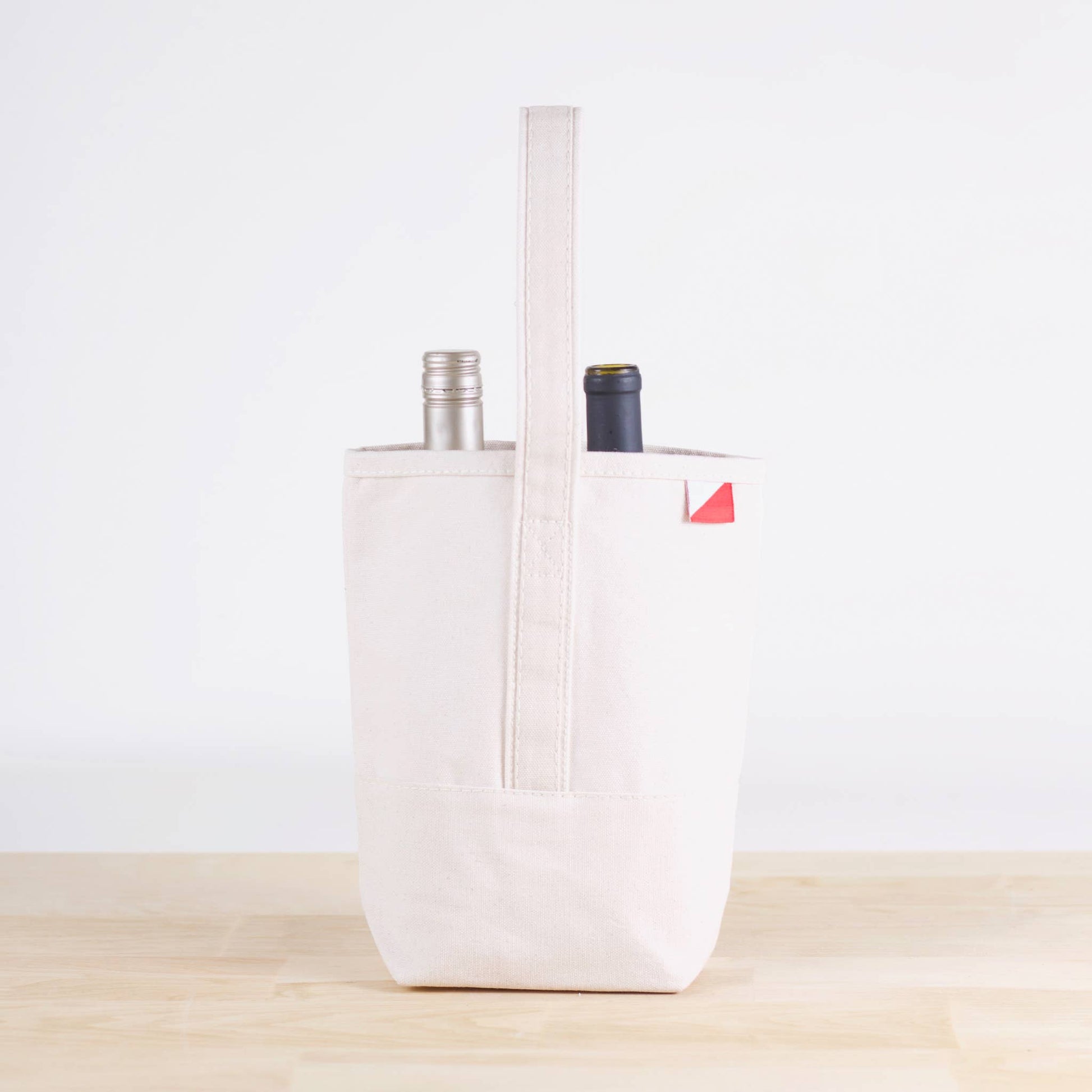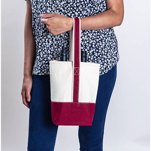 No need for gift wrap, this wine bag holds two bottles of wine for a beautiful presentation. (Or schleping to Ravinia!) Made of heavyweight cotton canvas, this bag includes a cotton piece that velcro's in place to keep the bottles from clanking. Works beautifully for host gifts, corporate events, and celebrations, wine not included!