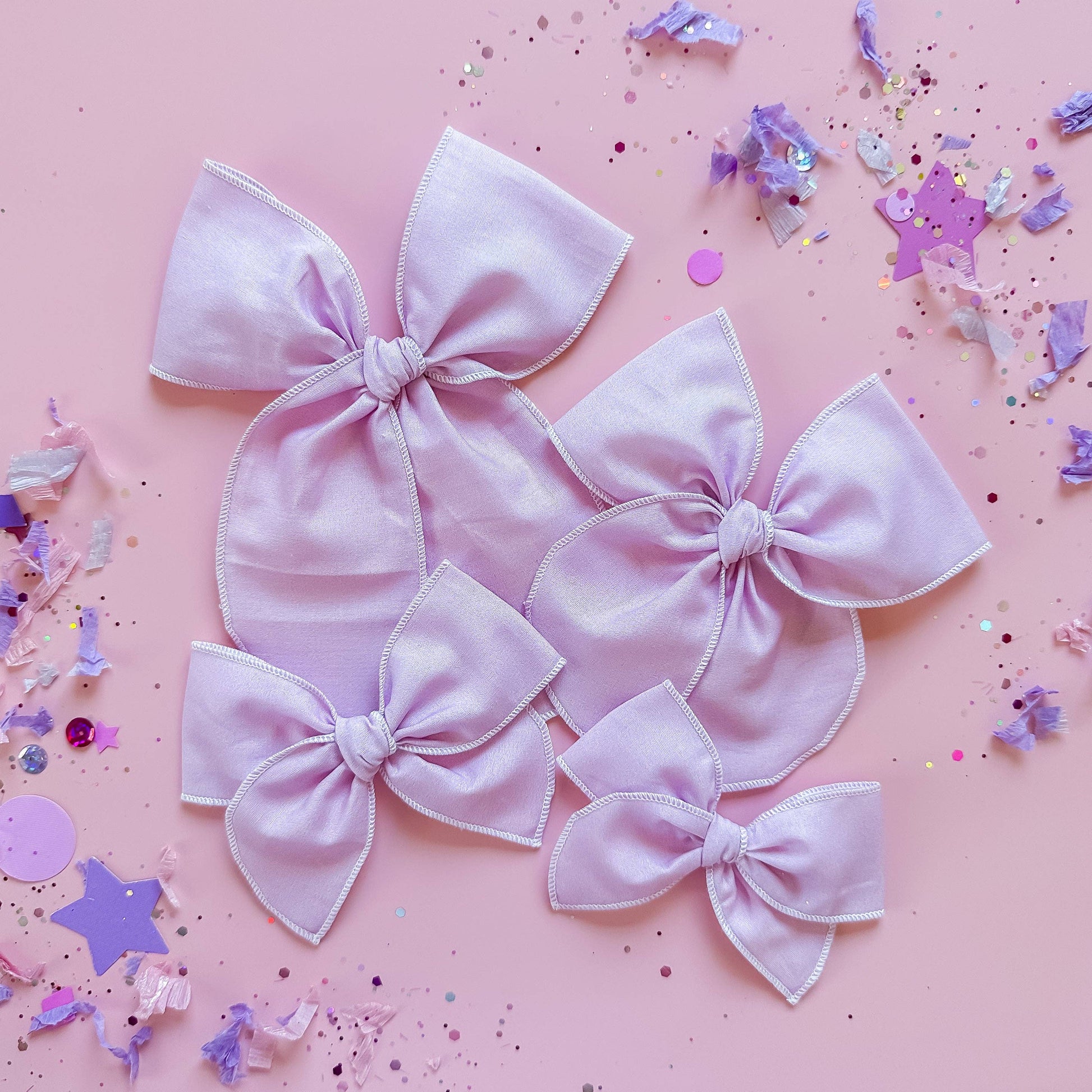 Beautiful and fun handmade Lavender bow on a flat reversible alligator clip with teeth.