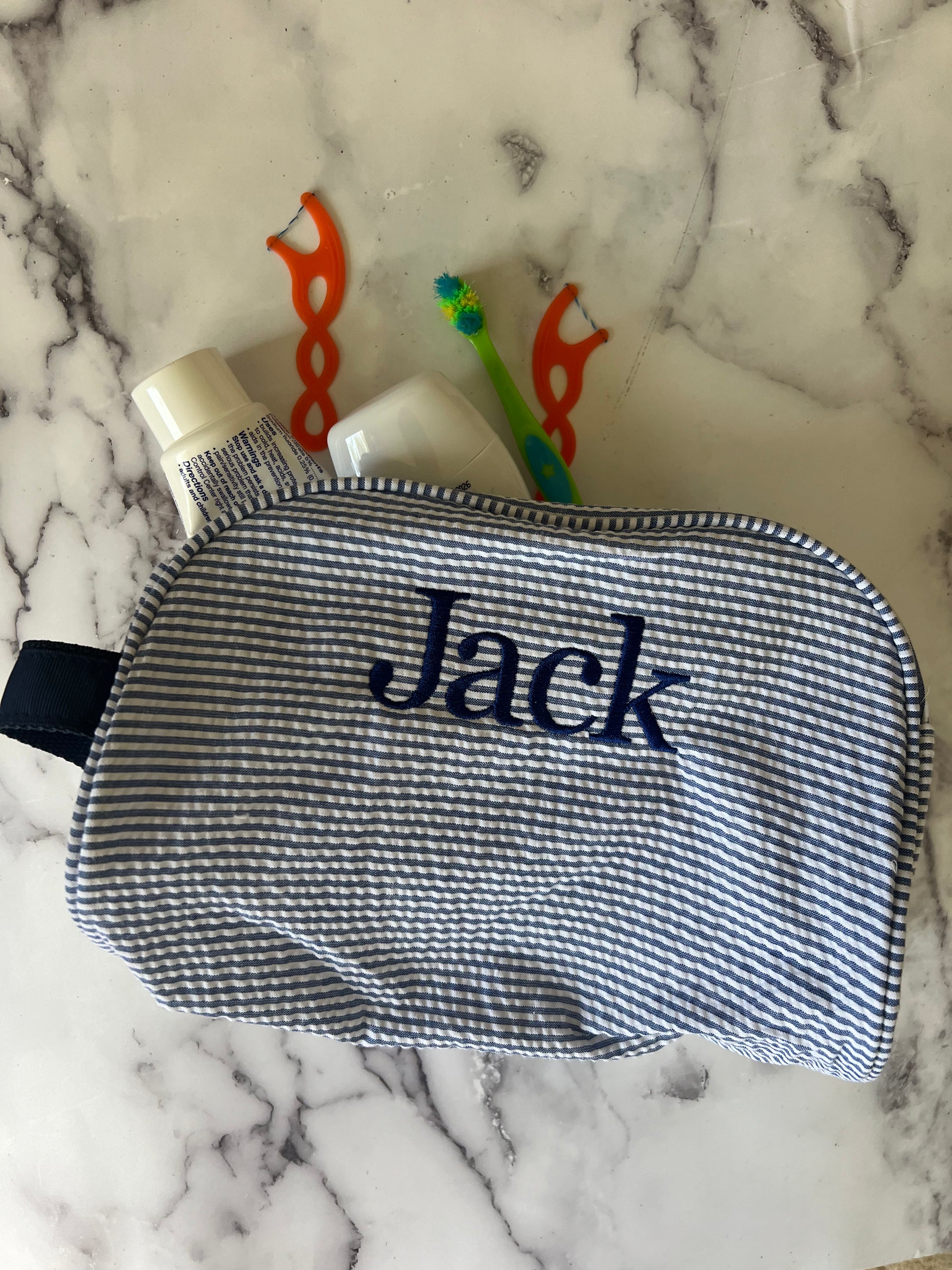 An updated version of our dopp kit, the travelers are a little bit smaller and a whole lot cuter! Perfect for travel anywhere - camp, slumber parties, vacations, the gym. They make great gifts too!