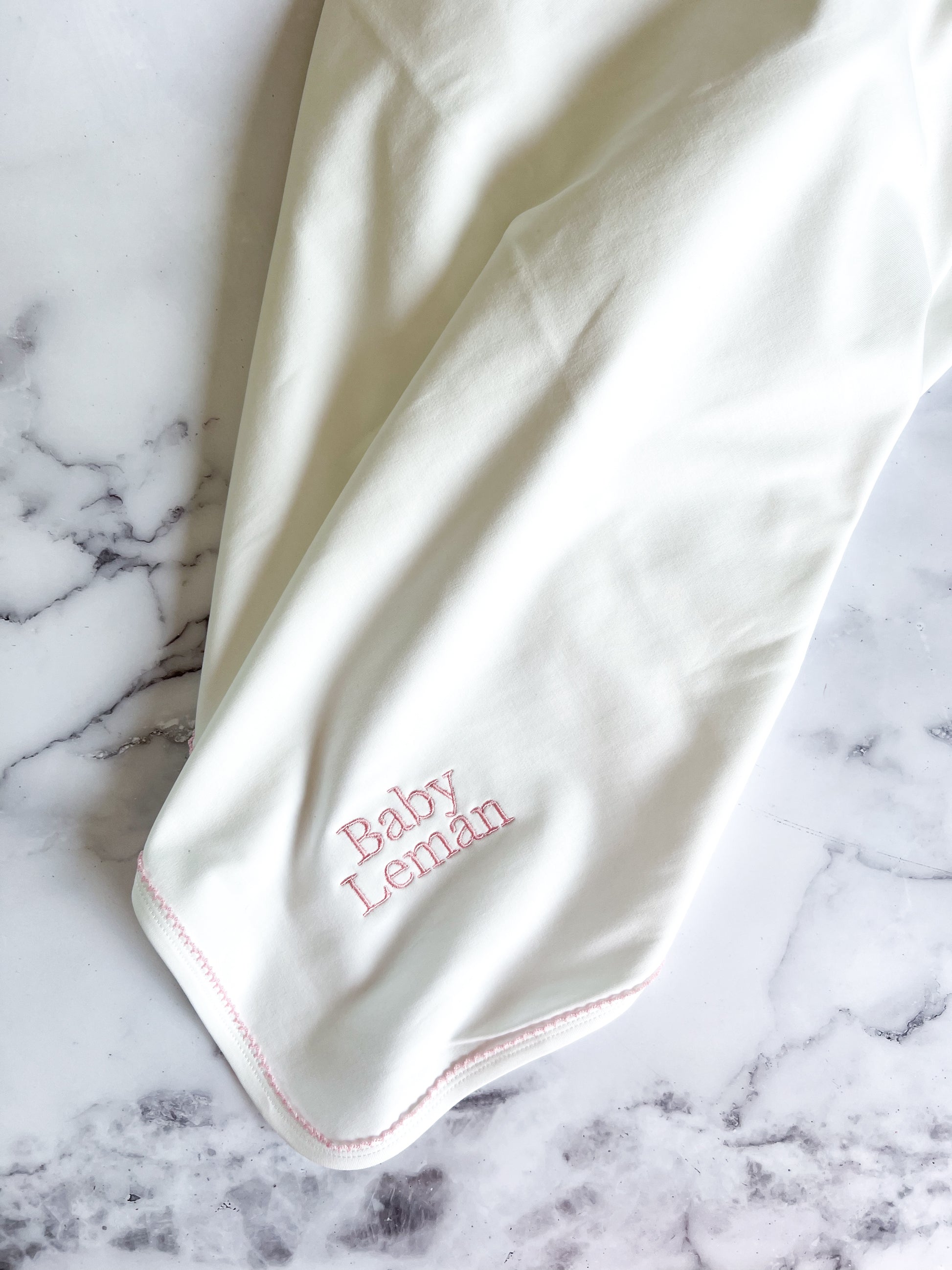 Hi, I'm new here! This blanket is the perfect way to welcome your little one into the world! Made from the softest 100% Organic Cotton, it's both soft and gorgeous.