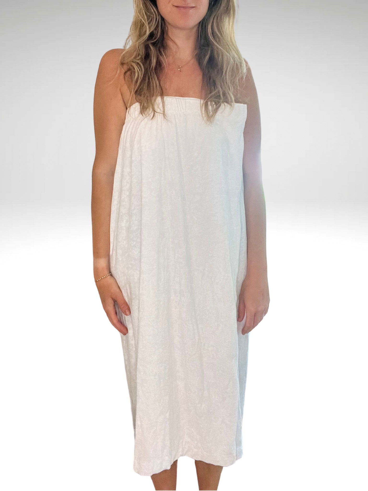 Our one size fits most Terry Wrap is perfect for glam, camp, and dorm life! The wraps velcro closure, generous length, and light terry material make it super versatile! No worrying about bending to grab your shower caddy.