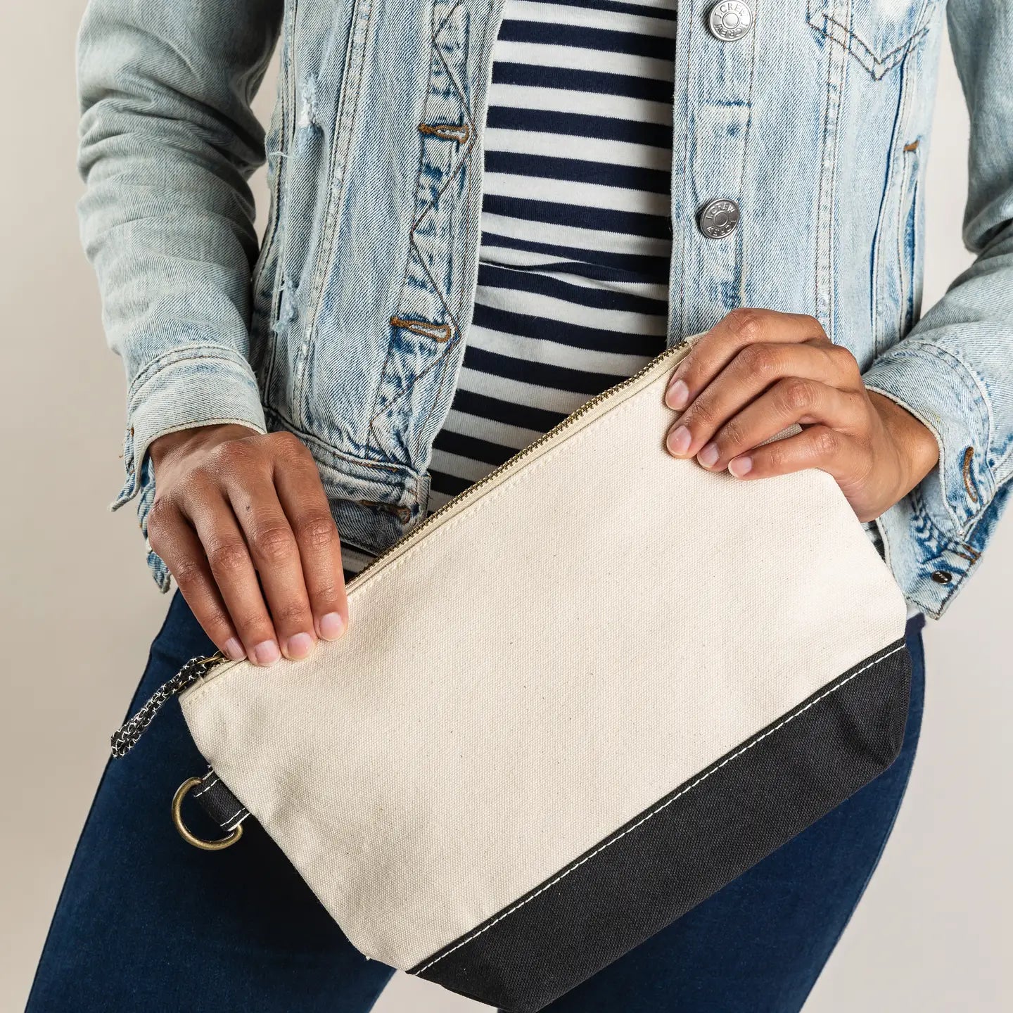 Zip Pouches are conveniently sized for thousands of small goods-- from a collection of markers or road trip snacks to charging cables and make up. Monogram them with your favorite teacher's name, zip code, longitude and latitude or simply embroider "STUFF," these pouches have a million uses.